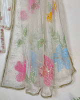 Crafted from pure organza, this handpainted dupatta features fine detailing and subtle hand embellishments that enhance its graceful charm. Airy and refined, it is designed to elevate your ensemble with effortless elegance.