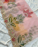 This pure organza dupatta is thoughtfully handpainted and finished with intricate handwork, offering a unique blend of artistry and sophistication. Light, sheer, and elegant, it completes your look with timeless grace.